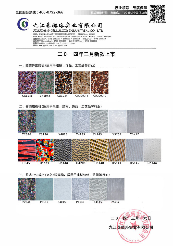 九江賽璐珞14年3月份新款發布